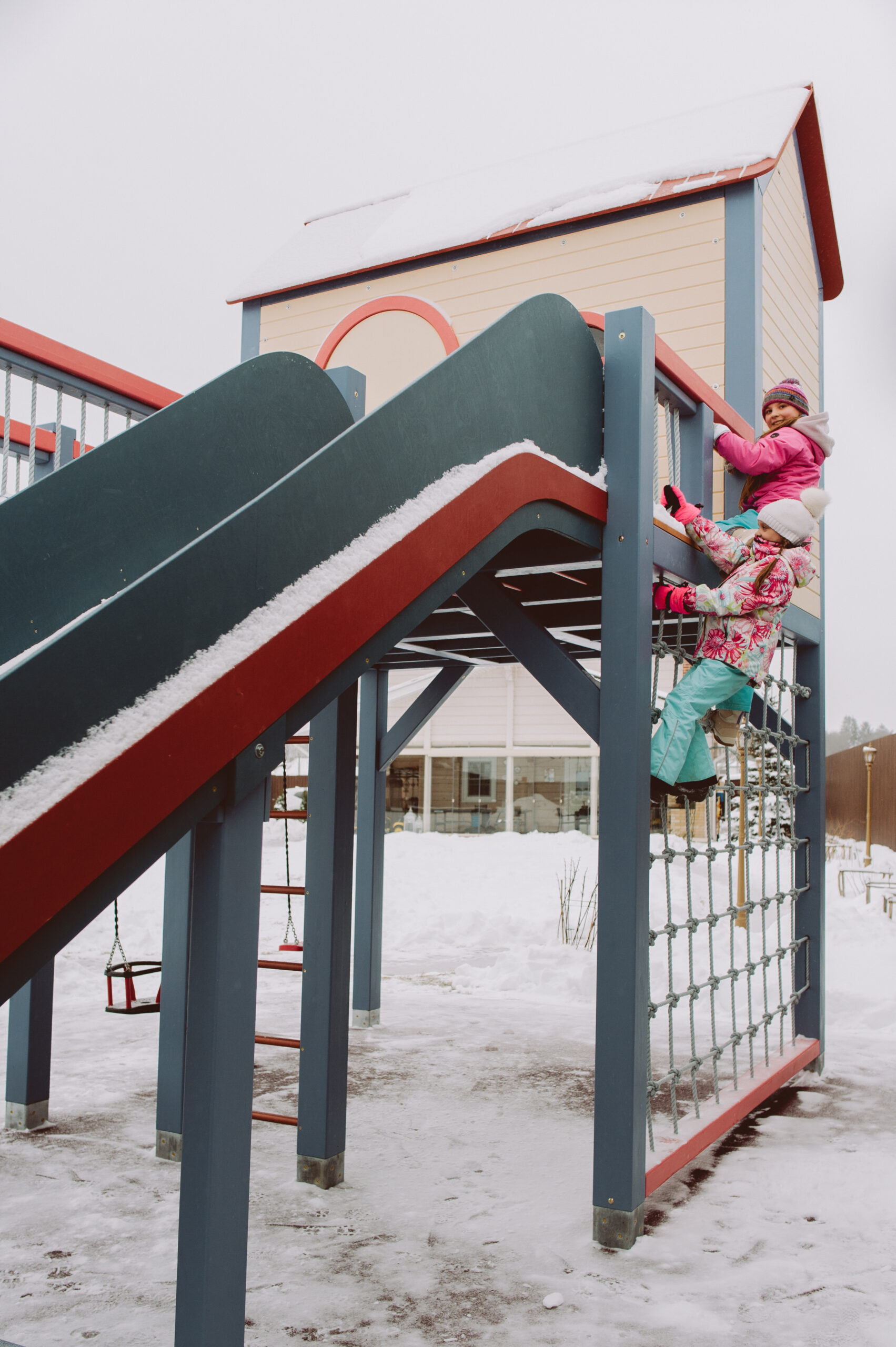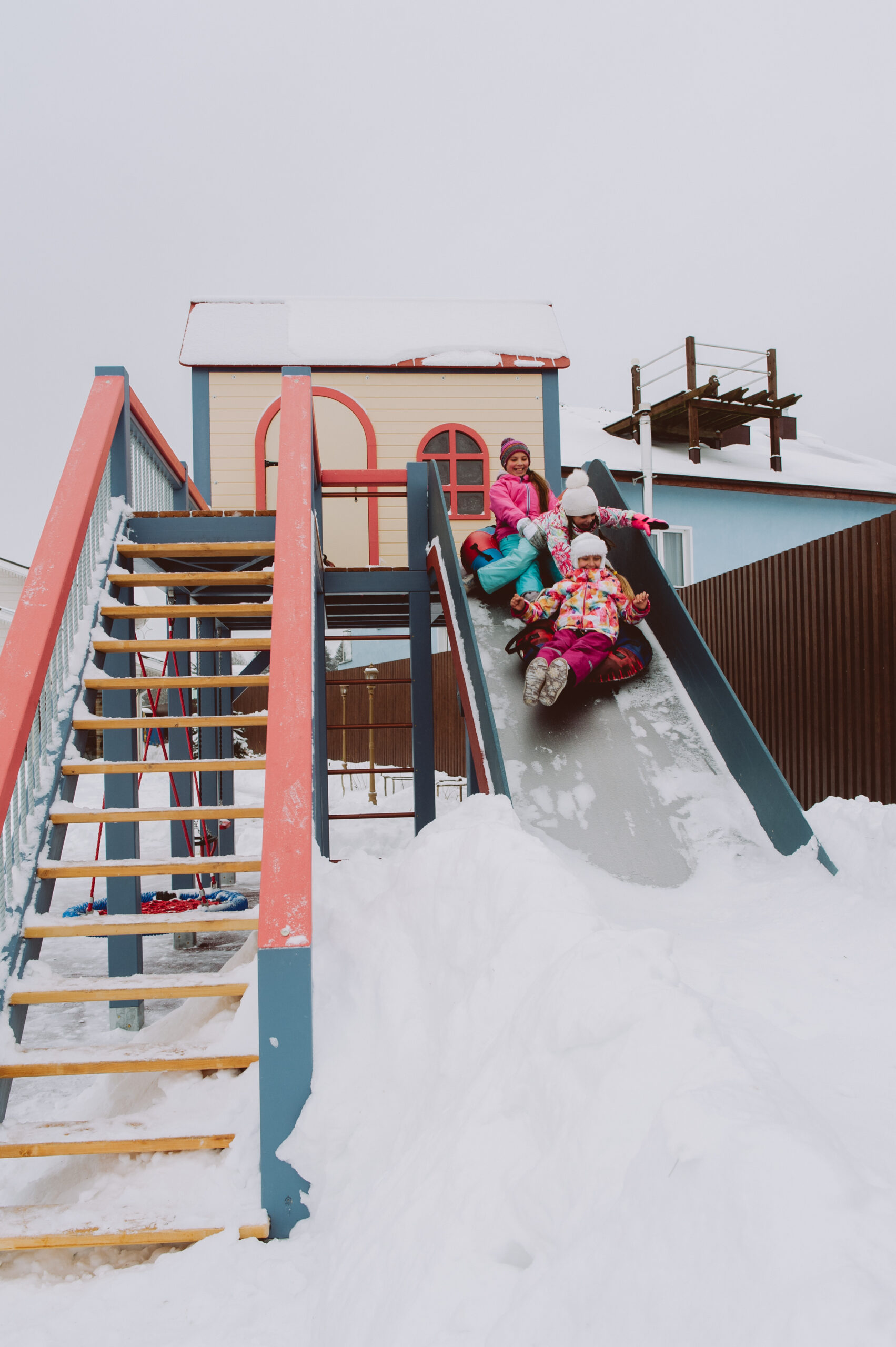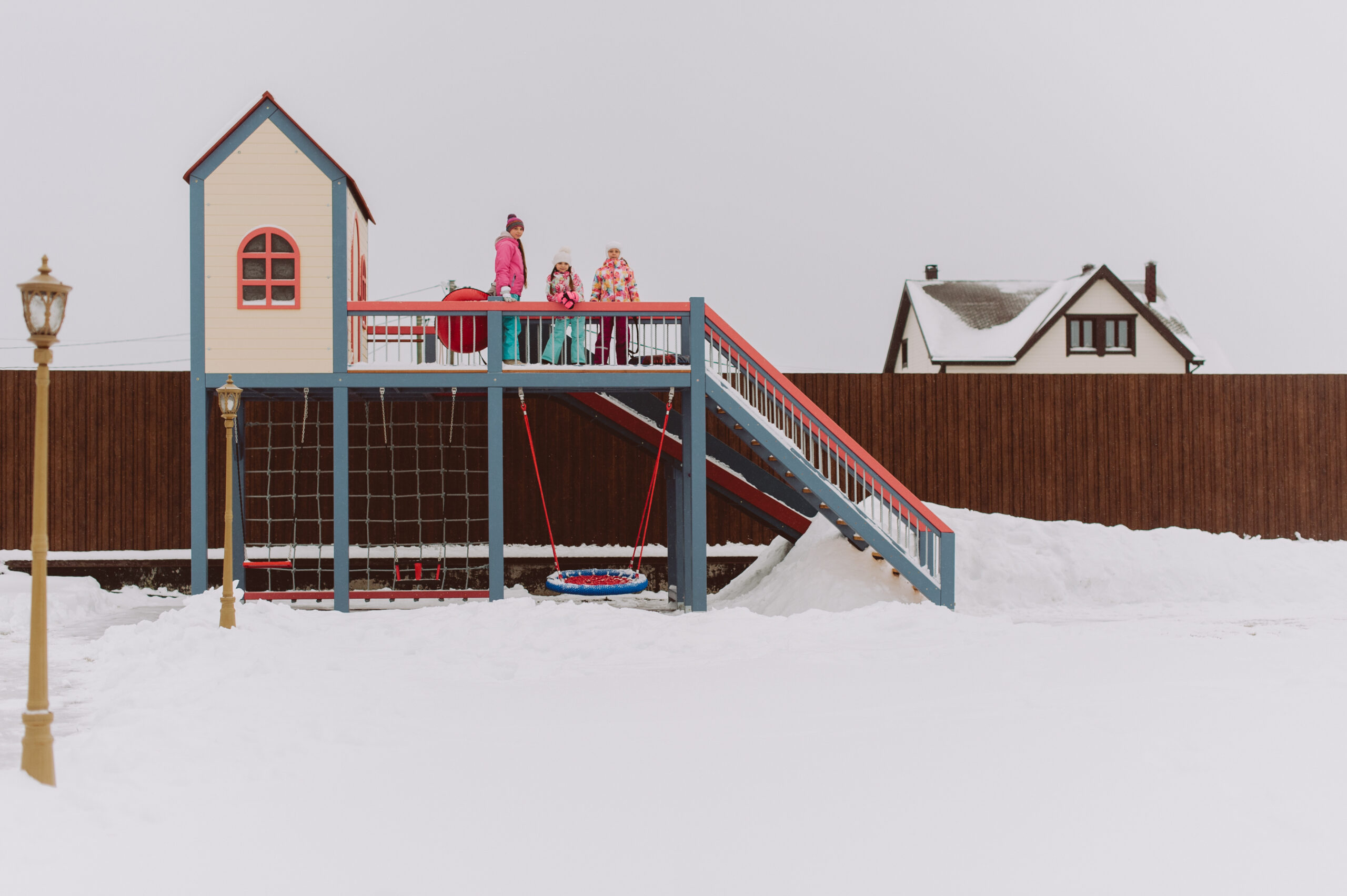 Игровой комплекс «Балтийская слобода» был создан по заказу семьи с тремя детьми — двумя активными девочками и новорождённым мальчиком. Основная идея заключалась в том, чтобы построить домик и горку для девочек, где они могли бы играть круглый год.