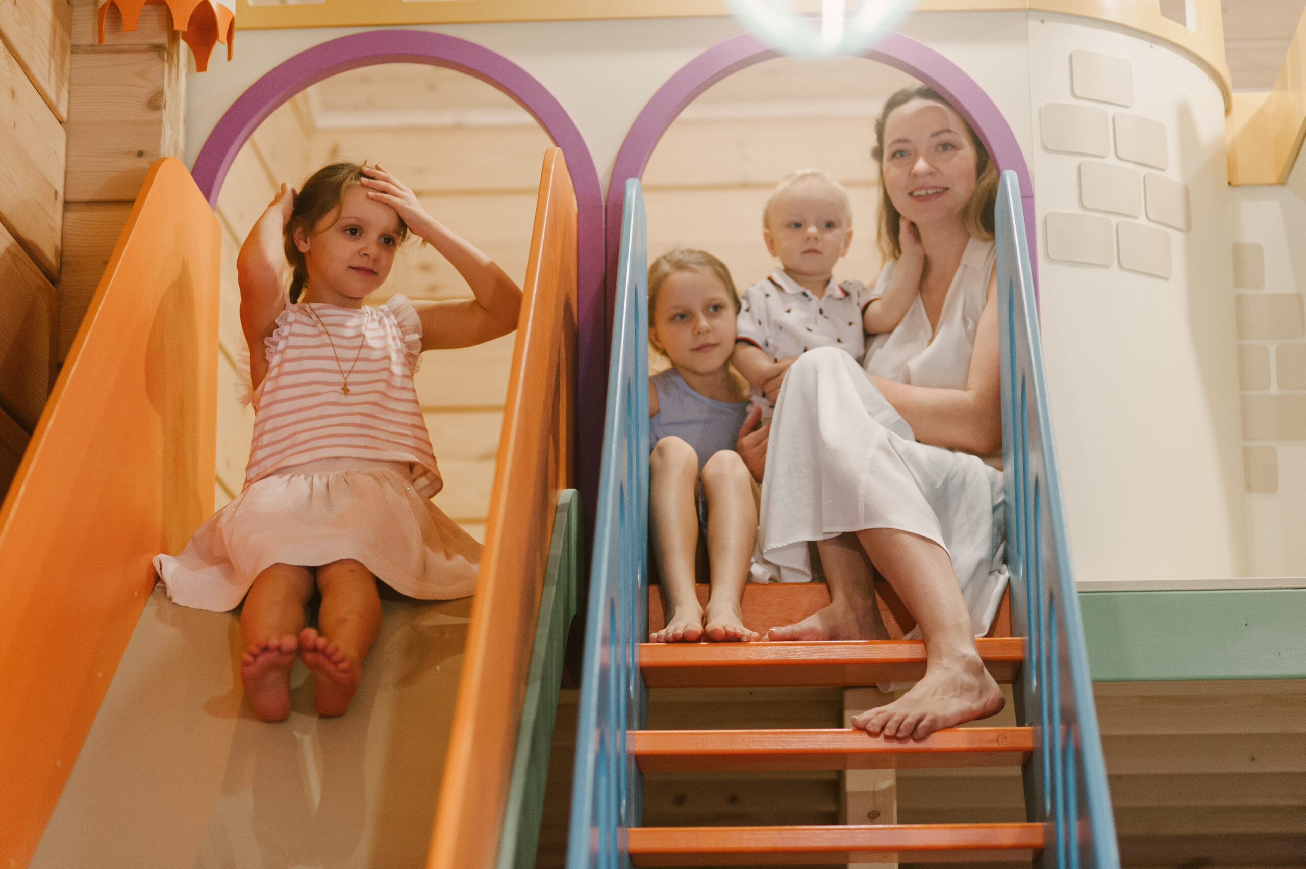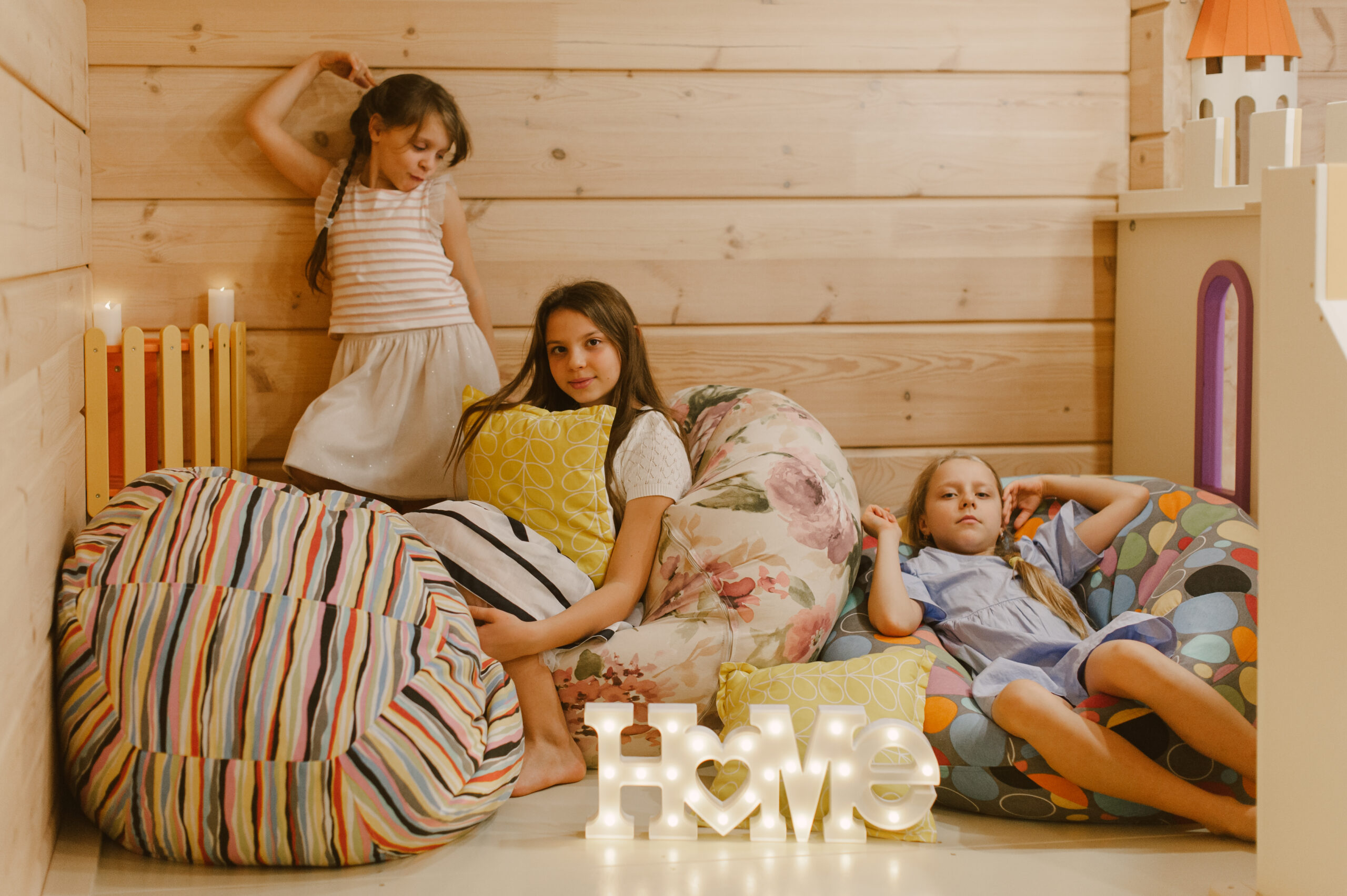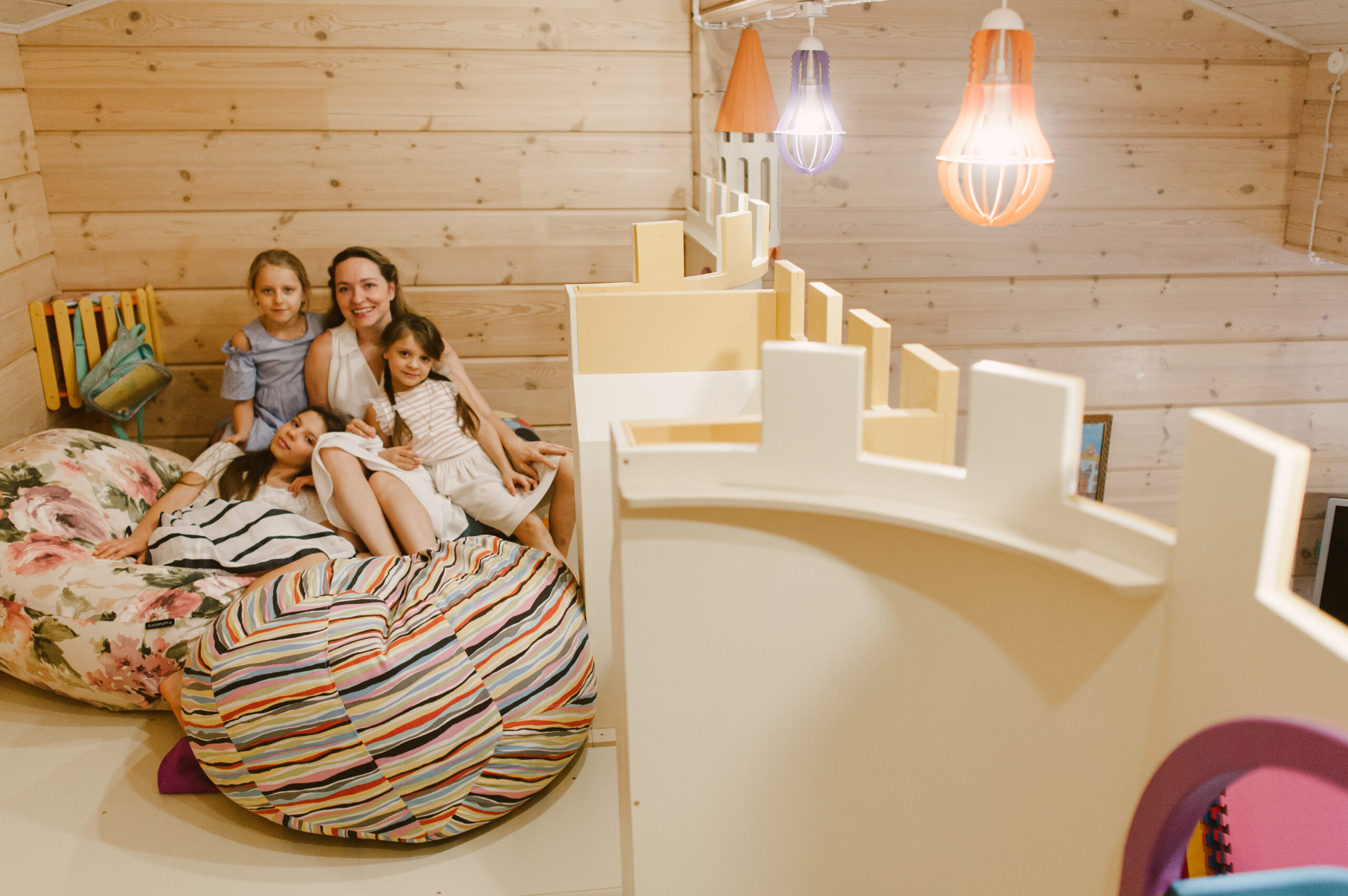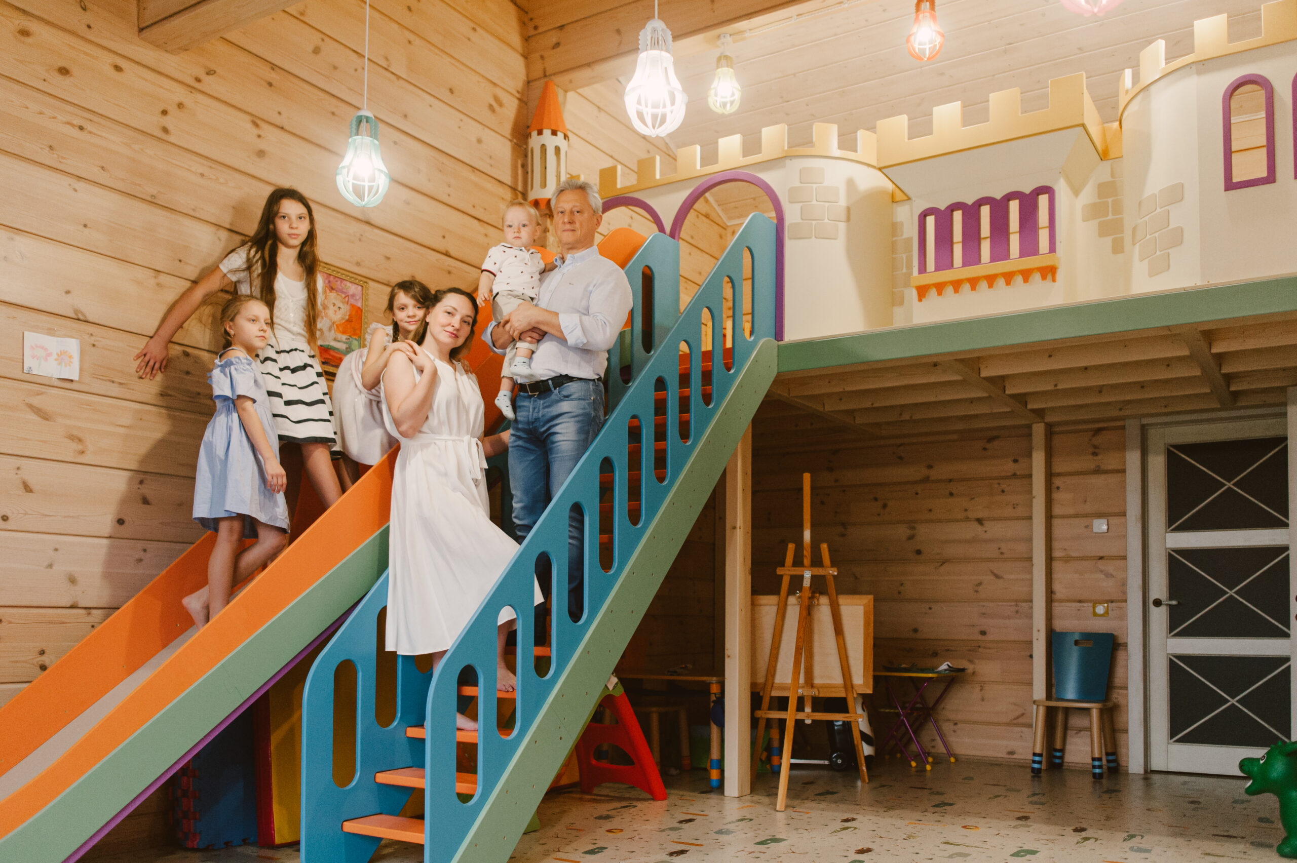 Проект задумывался как уютное и волшебное место для игр двух сестер. Просторная комната с высоким потолком и вторым светом вдохновила на создание многоуровневого игрового пространства — замка с башнями и горкой, соединяющего воображение и функциональность. На втором уровне расположилась укромная зона для игр и отдыха — мягкий уголок с подушками, где можно читать, мечтать и играть в «тайное королевство». Спуститься вниз можно по широкой горке. Фасад замка стал ярким интерьерным акцентом: декоративная стена с фактурой камня и встроенным светом фонарей создаёт атмосферу настоящего сказочного города. Пространство получилось не только красивым, но и продуманным — каждая деталь работает на комфорт, безопасность и игру. Этот проект — о детстве, фантазии и семейном тепле. Он объединил в себе архитектуру, игру и уют, превратив комнату в место, где хочется оставаться подольше.